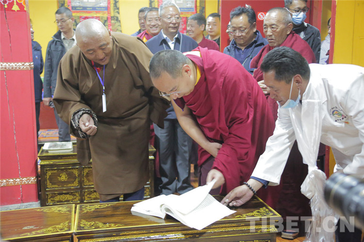 圖為十一世班禪翻閱藏醫(yī)藥文獻(xiàn) 攝影:王淑