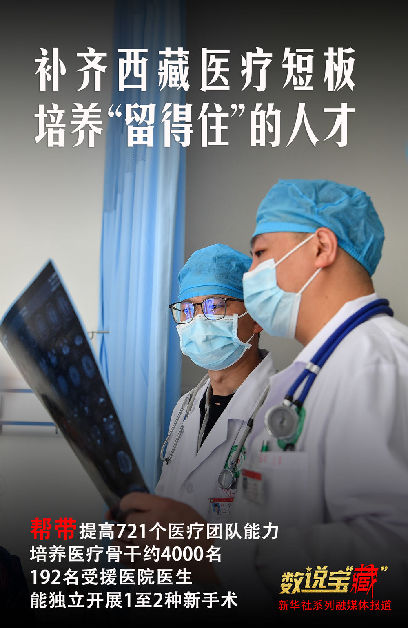 醫(yī)療人才“組團(tuán)式”援藏實施以來,共幫帶721個醫(yī)療團(tuán)隊、2031名本地醫(yī)務(wù)人員、培養(yǎng)醫(yī)療骨干約4000名,已有192名受援醫(yī)院的醫(yī)生能獨立開展1種至2種新手術(shù),實現(xiàn)了400多種較大疾病不出藏,大多數(shù)“中病”不出市(地)就能得到治療。