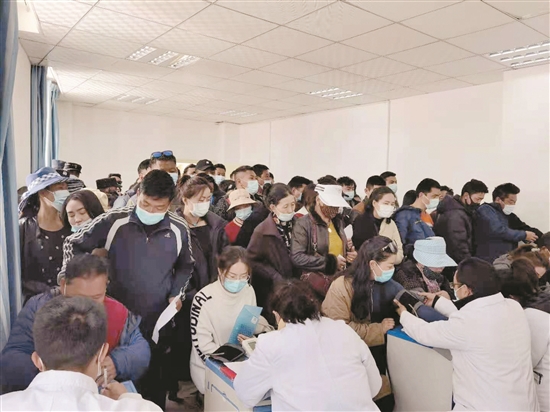 圖為5月12日上午,拉薩市城關(guān)區(qū)八廓街道社區(qū)衛(wèi)生服務(wù)中心內(nèi)前來(lái)登記接種疫苗的群眾絡(luò)繹不絕。拉薩融媒記者攝