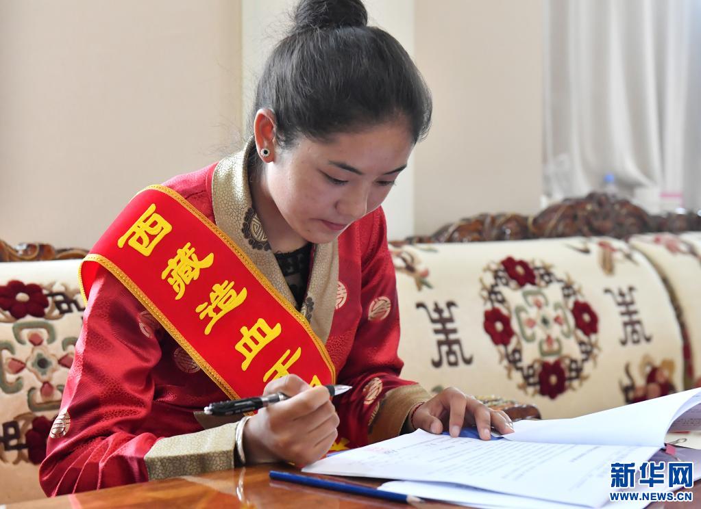 拉增簽署捐獻造血干細胞同意書(5月7日攝)。新華社記者 孫瑞博 攝
