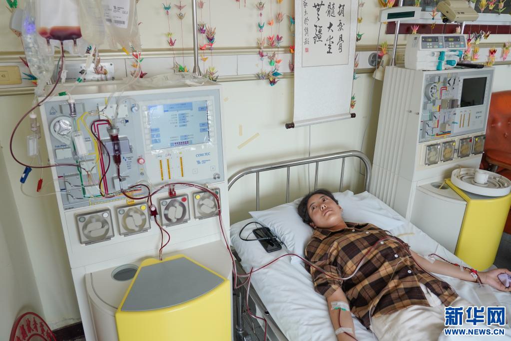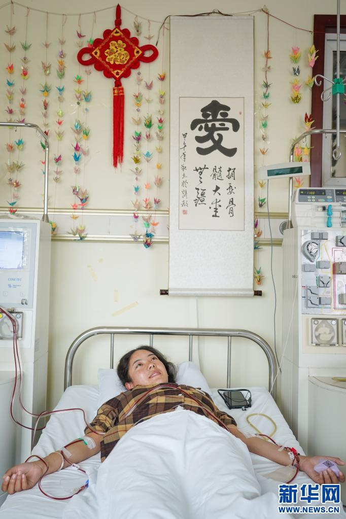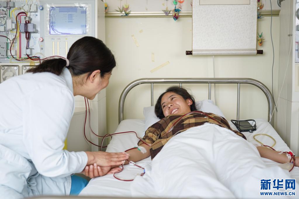 醫(yī)生摸著拉增的手和她聊天,造血干細胞整個采集時間需要近4個小時(資料圖片)。新華社記者 彭子洋 攝