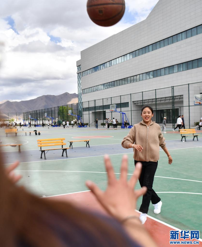 拉增在西藏大學操場打籃球(5月7日攝)。新華社記者 晉美多吉 攝