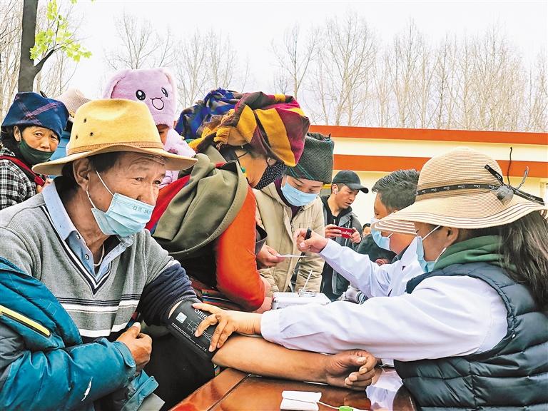 圖為西藏藏醫(yī)藥大學(xué)附屬醫(yī)院的醫(yī)護(hù)人員為林周縣村民義診。記者 央金 攝