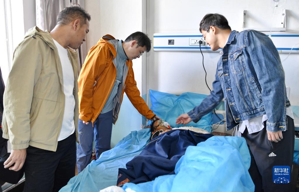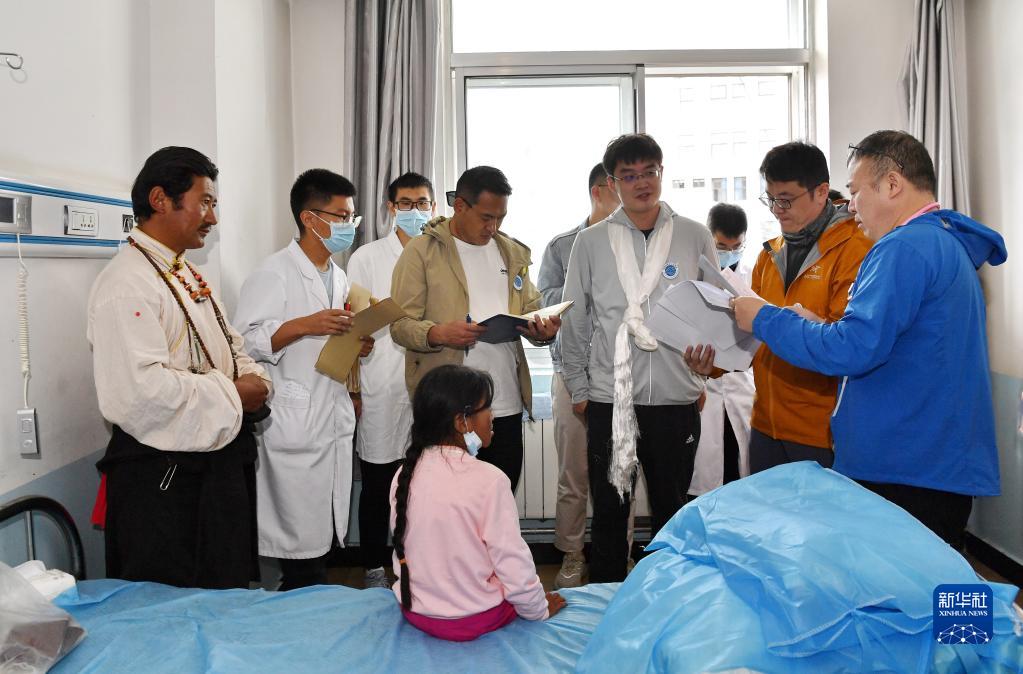 7月29日,在阿里地區(qū)人民醫(yī)院,醫(yī)生們?yōu)榇诫窳鸦颊邥\。新華社記者 張汝鋒 攝