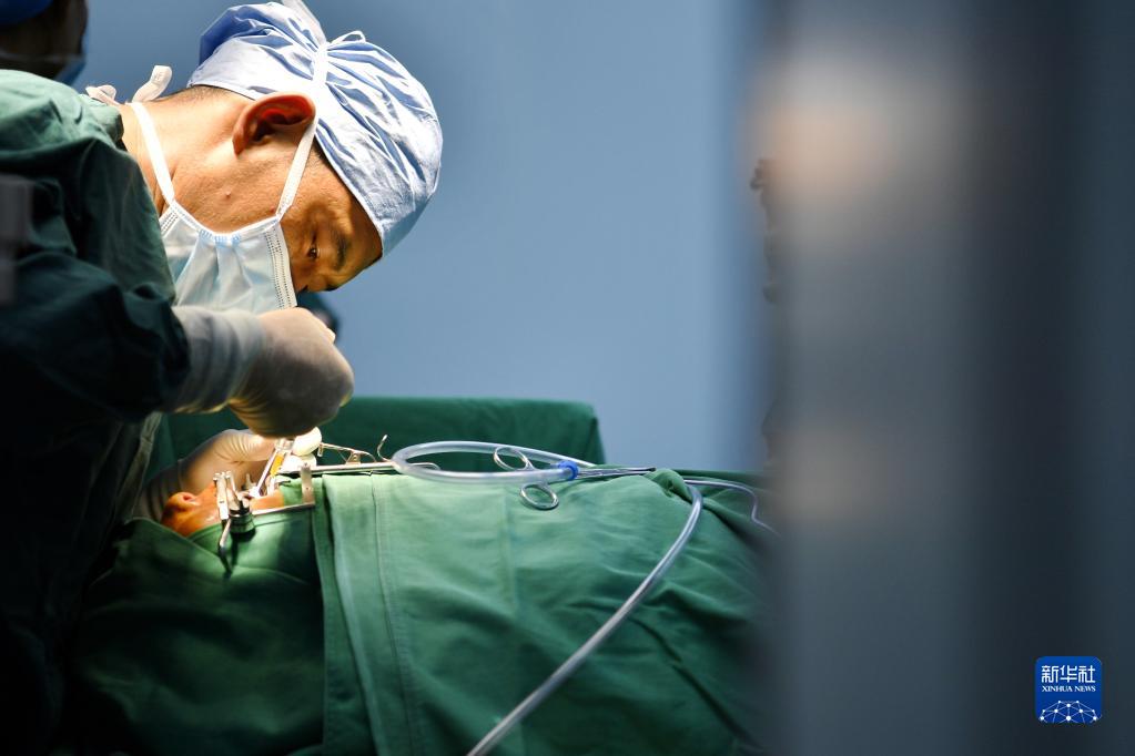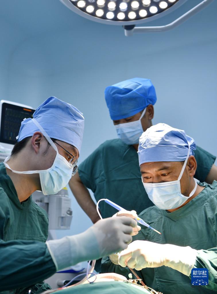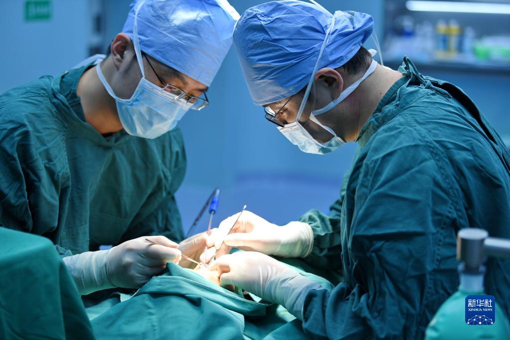 7月29日,在阿里地區(qū)人民醫(yī)院手術(shù)室,醫(yī)生為唇腭裂患者做修復手術(shù)。新華社記者 張汝鋒 攝