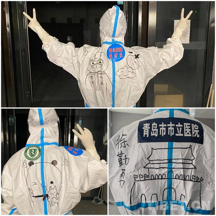 中國西藏網(wǎng)訊 青島援藏醫(yī)療隊自8月17日進藏以來, 隊員們無論工作多累多難、高原反應有多難受,都沒有一句怨言,依然堅持在西藏自治區(qū)日喀則市戰(zhàn)“疫”一線。工作之余,來自青島市市立醫(yī)院本部ICU的鐘翔宇發(fā)揮出了她的“隱藏技能”——在醫(yī)療隊的“大白”身上畫上漫畫,用表情包背到身上的方式給隊友們加油鼓勁兒。身著漫畫“戰(zhàn)袍”的隊員們斗志昂揚,朝氣蓬勃,互相鼓勵幫助,完成了一天天的工作任務。而這些古靈精怪的漫畫,在戰(zhàn)“疫”一線也成了一道靚麗的風景線。(中國西藏網(wǎng) 記者/次旦拉姆 由桑珠孜區(qū)融媒體中心供稿)