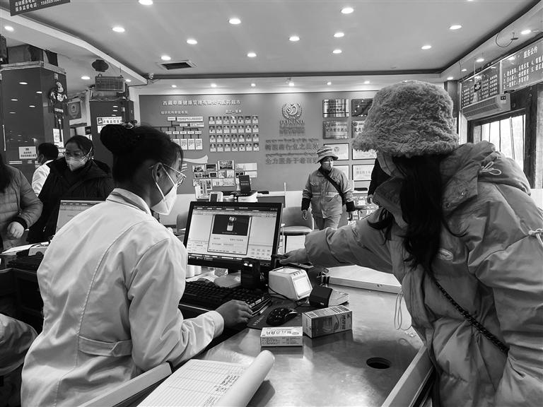 拉薩市民正在藥店使用醫(yī)??ㄙ徦?。