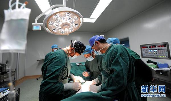 圖為昌都市人民醫(yī)院外科醫(yī)生費(fèi)江(左前一)和助手在給包蟲(chóng)病患者進(jìn)行手術(shù)治療 攝影:新華社記者 晉美多吉