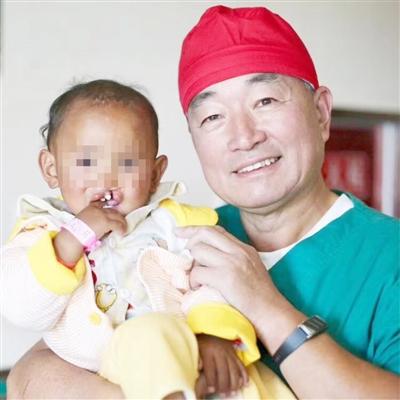 “母親微信行動”主治醫(yī)生與患兒在一起。圖由德吉提供