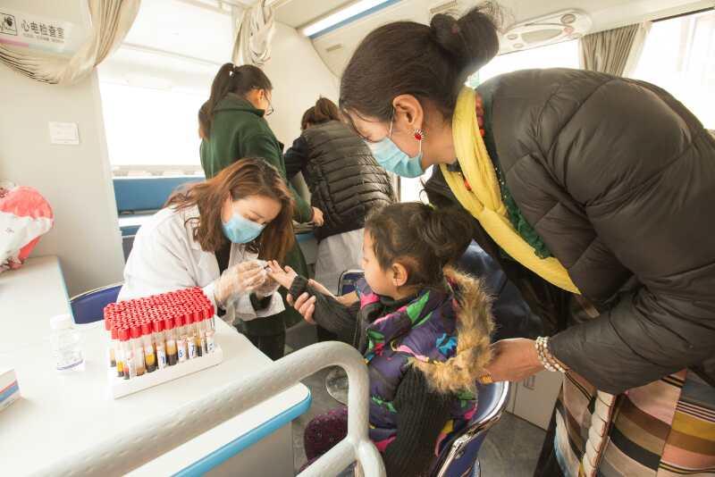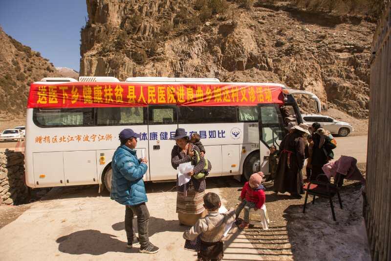 一輛八米多長(zhǎng)的農(nóng)牧民健康體檢車(chē)按照年度計(jì)劃,穿梭于比如縣的大小鄉(xiāng)村。車(chē)上載有先進(jìn)的DR(數(shù)字影像攝片機(jī))、便攜彩超機(jī)、心電圖機(jī)、便攜檢驗(yàn)設(shè)備。這臺(tái)車(chē)是浙江省援藏副指揮長(zhǎng)、比如縣委常務(wù)副書(shū)記盛悠聯(lián)系寧波市江北區(qū)政府捐贈(zèng)的。在第八批寧波紹興援藏工作組干部的精心設(shè)計(jì)下,專門(mén)向宇通公司定制的一輛功能齊全的大巴體檢車(chē),光車(chē)底和改裝費(fèi)用就達(dá)73萬(wàn)元。它與普通體檢車(chē)需要接入停泊地市電、自來(lái)水才能運(yùn)行不同,寧波的援藏干部根據(jù)西藏鄉(xiāng)村缺電少水的現(xiàn)狀,多方咨詢方案,最后增加了價(jià)值十萬(wàn)元的高壓電容設(shè)備,實(shí)現(xiàn)了通過(guò)車(chē)載的小型發(fā)電機(jī)帶動(dòng)50千瓦的DR,并可連續(xù)運(yùn)轉(zhuǎn),這在全國(guó)尚屬首例。車(chē)上還配備主動(dòng)式抽水泵,解決上水問(wèn)題,并配有空調(diào)系統(tǒng)。車(chē)子開(kāi)到哪里,便可不靠外力,進(jìn)行包括拍攝X光片、彩超、心電、檢驗(yàn)等的全面健康體檢,許多鄉(xiāng)鎮(zhèn)衛(wèi)生院也不如這輛體檢車(chē)的配置強(qiáng)大。