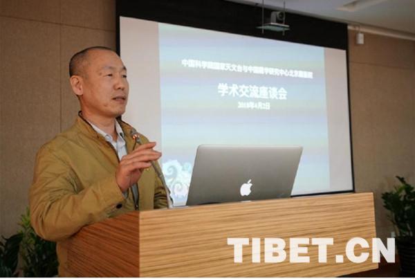 圖為青海省玉樹藏族自治州藏醫(yī)藥研究所格列嘉措副所長作《關(guān)于藏族天文歷算的學習及思考》報告。攝影:李偉 魯星杞
