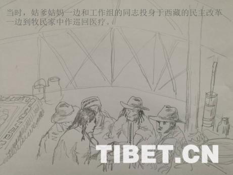 還有一次,一個藏族孩子患風(fēng)濕性心臟病伴心衰,全身浮腫,病情危急。藏族有風(fēng)俗,家有病人時他們會在門口做好標(biāo)記防止陌生人闖入沖犯。當(dāng)時家屬正在為病兒念經(jīng)求佛,由于工作組的帶隊同志急于救治患者,所以不顧藏族翻譯的勸阻推門進(jìn)去了,觸犯了風(fēng)俗。病人家屬一開始極為反感,到知道我姑媽是漢族的醫(yī)生后才有所緩和。經(jīng)過姑媽的動員,孩子接受了治療,這一治療前后就用了半個月時間。因為當(dāng)時的醫(yī)療條件極其困難,設(shè)備極其匱乏,有困難只能求助于駐軍部隊的軍醫(yī)。姑媽當(dāng)時也是剛從大學(xué)畢業(yè),臨床經(jīng)驗也不多,她住在藏族人民家里邊觀察、邊診斷、邊治療,經(jīng)過半個月的精心照料,小兒病情明顯好轉(zhuǎn),家屬感激之余燒掉了經(jīng)書,從此積極宣傳黨的民族政策,認(rèn)為政府派來的醫(yī)生能治好“神”都治不好的病人,并到處和村民們說有病快找政府的醫(yī)生。這些成功的病例終于使姑爹姑媽開展洛扎縣的醫(yī)療衛(wèi)生工作有了群眾基礎(chǔ)。