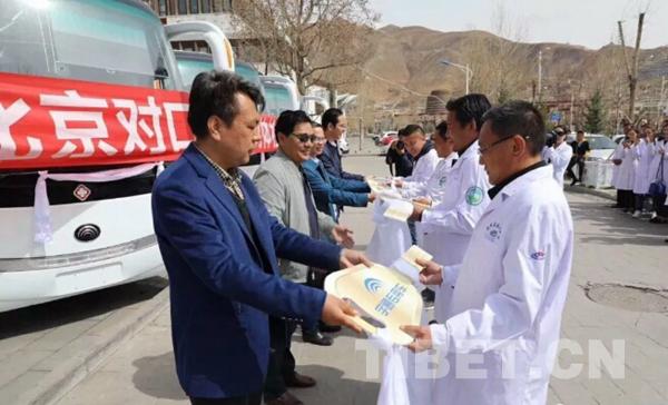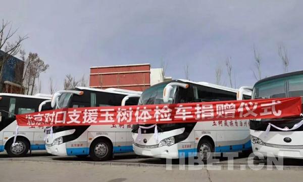 圖為北京對(duì)口支援玉樹(shù)體檢車捐贈(zèng)儀式現(xiàn)場(chǎng)