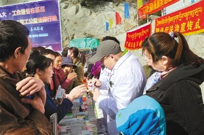 近日,西藏自治區(qū)總工會在拉林鐵路達嘎拉隧道施工現(xiàn)場,開展了以“學(xué)習(xí)貫徹十九大·工會服務(wù)在基層”為主題的服務(wù)職工系列活動。活動現(xiàn)場,西藏自治區(qū)司法廳法律援助中心律師以“法律講堂”的形式與職工互動;西藏自治區(qū)人民醫(yī)院、西藏自治區(qū)藏醫(yī)院醫(yī)生為職工義診并發(fā)放了藥品;遠大農(nóng)民工藝術(shù)團、朗縣民間藝術(shù)團表演了文藝節(jié)目。