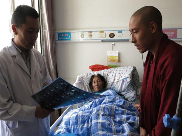 圖為玉樹州人民醫(yī)院醫(yī)生向病人家屬介紹手術(shù)后情況 圖片來(lái)源:青海新聞網(wǎng)