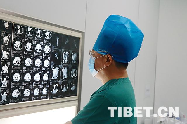 手術(shù)前,李寧院長再次核查格日的病情。攝影:陳衛(wèi)國