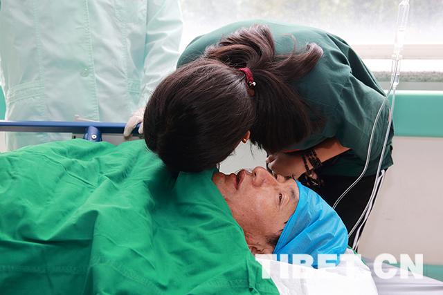 手術(shù)結(jié)束后,格日與女兒交流。攝影:陳衛(wèi)國