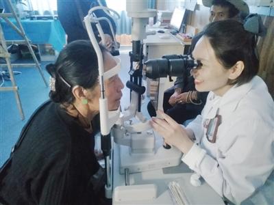 記者來到拉薩市人民醫(yī)院,看到眼部病房前排著長長的隊(duì),三位穿著白色大褂的醫(yī)生在對患者進(jìn)行登記、檢查、詢問。病房內(nèi)有一位六七歲的小姑娘,看起來雙目無神,“專家,幫我的孩子看看吧。”孩子父親焦急地說。專家示意讓小女孩坐在凳子上,眼睛注視前面,隨后用機(jī)器觀察孩子的眼睛?!靶∨⒌倪@種情況屬于白內(nèi)障,一個比較嚴(yán)重,一個較輕微,是需要做手術(shù)的,先做比較嚴(yán)重的那只眼睛?!贬t(yī)生說。