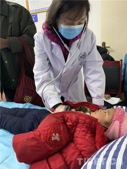 正在檢查按部就班進行時,診室內(nèi)突然迎來了一位特殊的小客人,她就是之前通過“光彩o民生銀行西藏兒童先心病救治項目”接受救治的患兒旦增卓拉。旦增卓拉的家長聽說工作組來到了類烏齊縣,特意帶著孩子來請專家復(fù)查,并且想當面對工作組表示感謝。