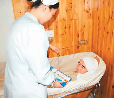中國(guó)藏學(xué)研究中心北京藏醫(yī)院,一位患者正在接受藏醫(yī)藥浴法治療。孫文敏攝