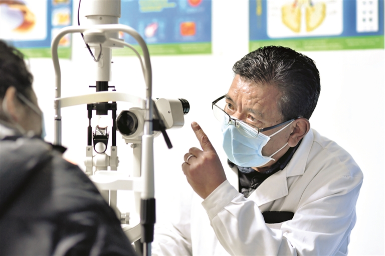 圖為3月24日,西藏拉薩光明眼科康復(fù)診療院醫(yī)生對白內(nèi)障患者進行檢查。記者 覺果 攝