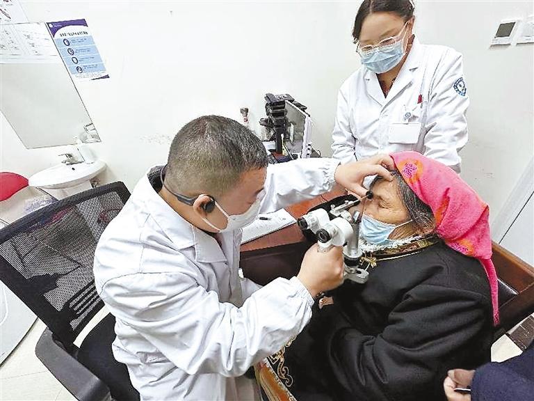 圖為義診專家為眼疾群眾作檢查。 記者 謝筱純 王珊 實習生 蓋姝博 攝