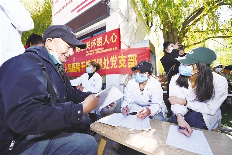 拉薩市城關(guān)區(qū)策門林社區(qū)居委會(huì)聯(lián)合自治區(qū)人民醫(yī)院干部保健處黨支部在宗角祿康公園開展義診進(jìn)社區(qū)活動(dòng)。西藏日?qǐng)?bào)記者 唐斌 攝