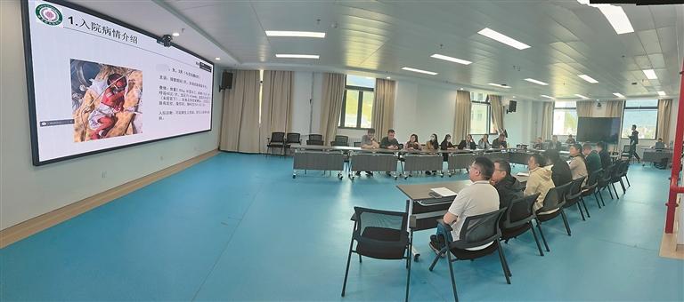 為制定精準(zhǔn)手術(shù)方案,林芝市人民醫(yī)院組織全院醫(yī)護(hù)人員大會(huì)診。記者 謝筱純 王珊 本報(bào)通訊員 李楊 攝