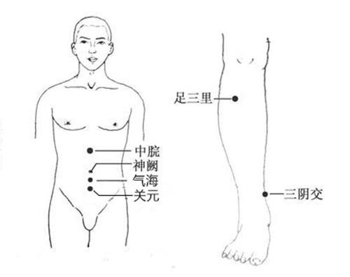 位于腹部正中線,臍下一寸五??煞乐蜗赂共刻弁?、大便不通、泄痢不止,遺尿、遺精、陽痿、滑精,閉經(jīng)、崩漏、帶下、子宮脫垂,中風脫證、脘腹脹痛、氣喘、疝氣,失眠、神經(jīng)衰弱、腸炎等。