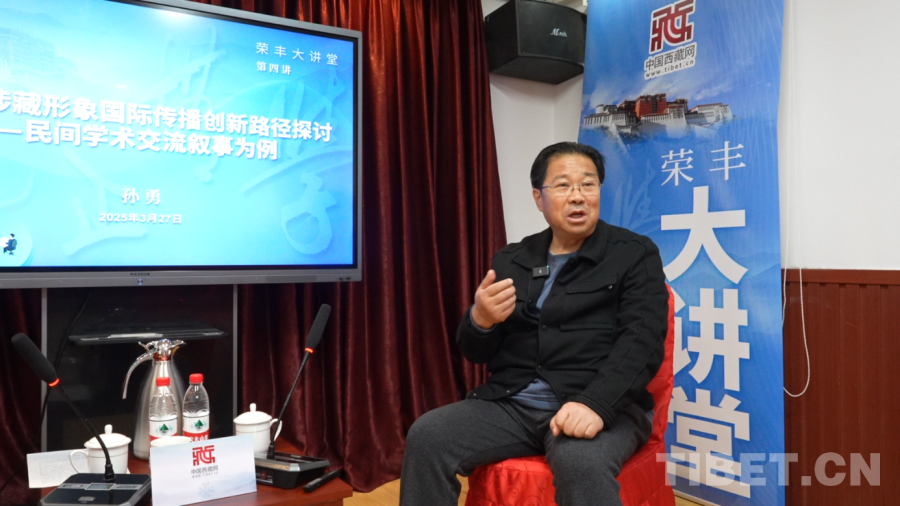3月27日,四川師范大學(xué)教授、博士生導(dǎo)師孫勇應(yīng)邀做客中國西藏信息中心“榮豐大講堂”,圍繞《新時(shí)代涉藏形象國際傳播創(chuàng)新路徑探討——以跨國民間學(xué)術(shù)交流敘事為例》主題作專題報(bào)告,為提升涉藏國際傳播效能提供理論支持與實(shí)踐路徑。