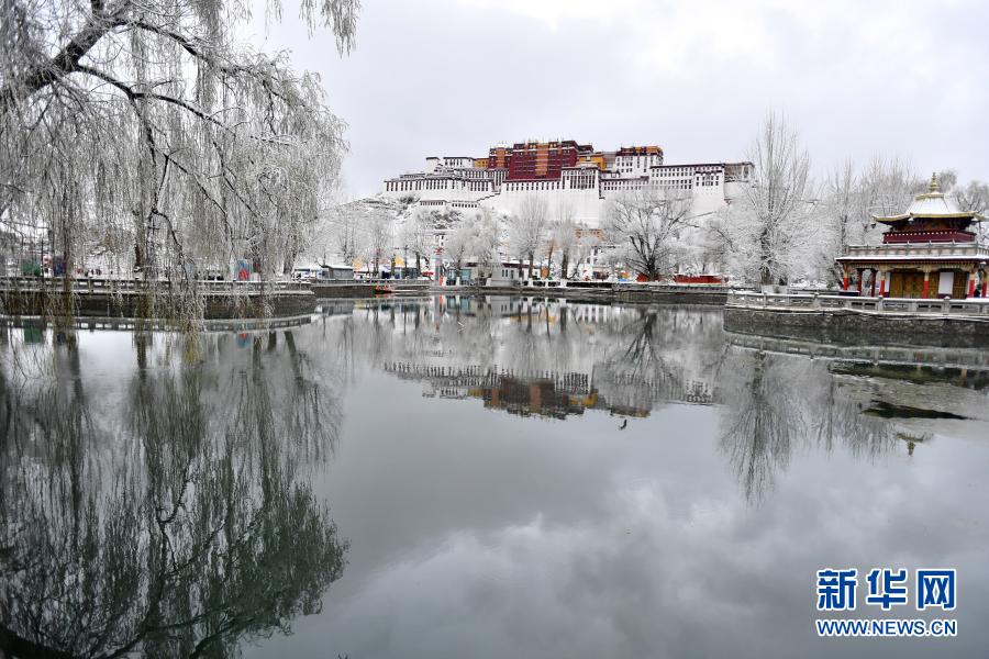 3月14日拍攝的雪中的布達(dá)拉宮。新華社記者 孫瑞博 攝