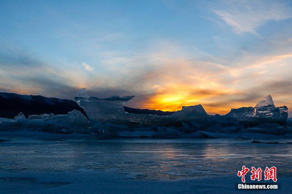 湖面上隆起的冰塊也在夕陽(yáng)照射下波光粼粼,勾勒出一幅絕美畫卷。趙海梅 攝