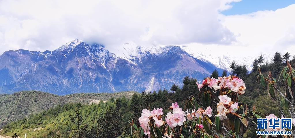 這是5月15日在吉隆溝拍攝的杜鵑花和雪山(手機(jī)照片)。新華社記者 沈虹冰 攝