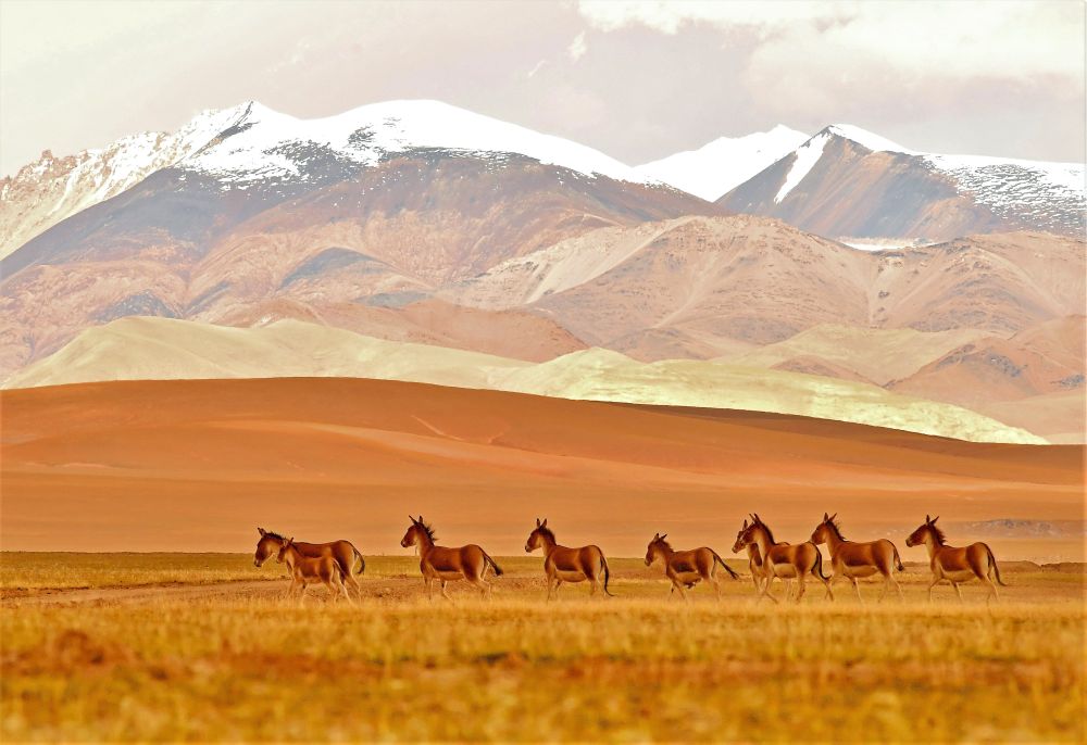不只是藏羚羊數(shù)量迅速增長,西藏絕大多數(shù)物種種群數(shù)量恢復(fù)性增長明顯。數(shù)據(jù)顯示,藏野驢數(shù)量由原來的5萬頭左右增加到現(xiàn)在的約9萬頭,黑頸鶴數(shù)量由原來的1000至3000只上升到約8000只,野牦牛數(shù)量增加至現(xiàn)在的1萬頭左右,野生動物在保護(hù)區(qū)內(nèi)自由繁衍生息。