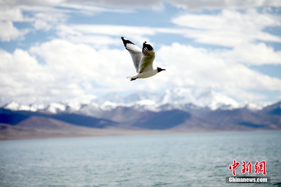 6月初,紅嘴鷗在西藏納木錯上空翱翔。隨著氣溫逐漸升高,納木錯迎來旅游旺季。納木錯藏語意為“天湖”,是中國第三大咸水湖,位于藏北高原東南部,念青唐古拉山峰北麓,拉薩市當雄縣和那曲市班戈縣境內(nèi),湖面海拔4718米。 中新社記者 陳小愿 攝