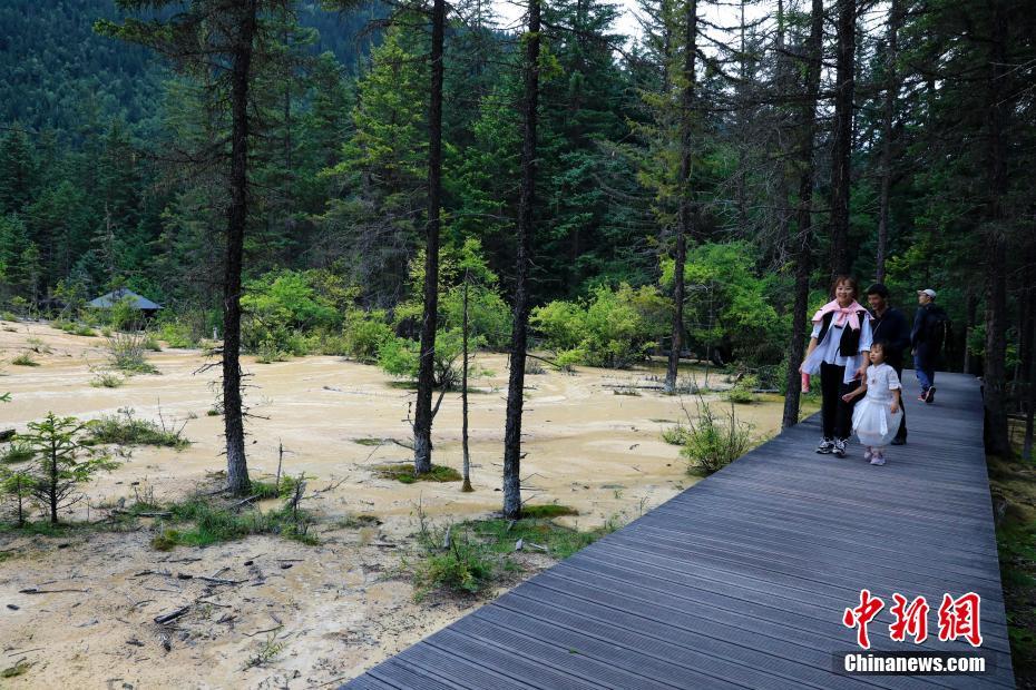 圖為8月23日,游人在嫩恩桑措景區(qū)游覽。中新社記者 王磊 攝