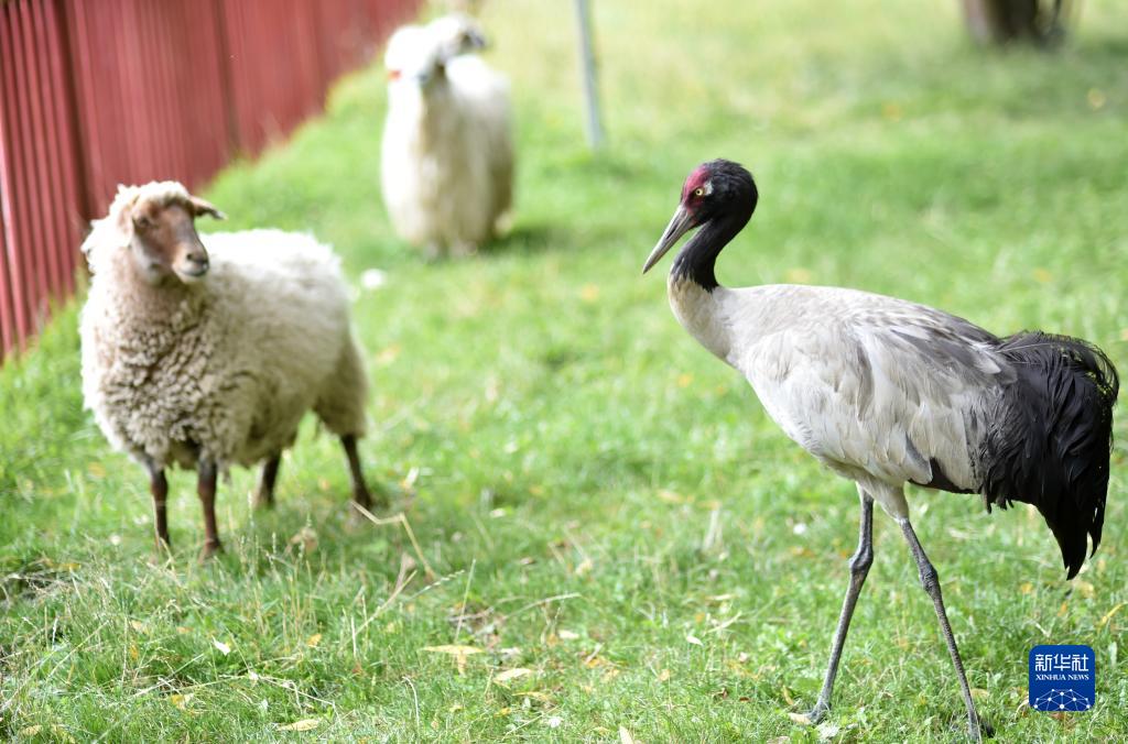 10月21日在三江源國家公園黃河源園區(qū)內(nèi)拍攝的黑頸鶴。新華社記者 張龍 攝