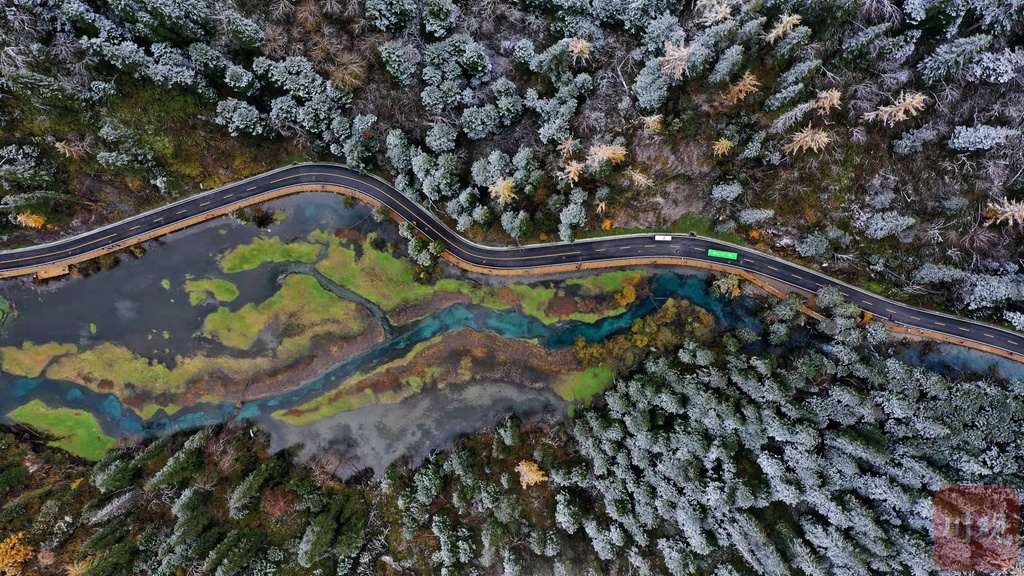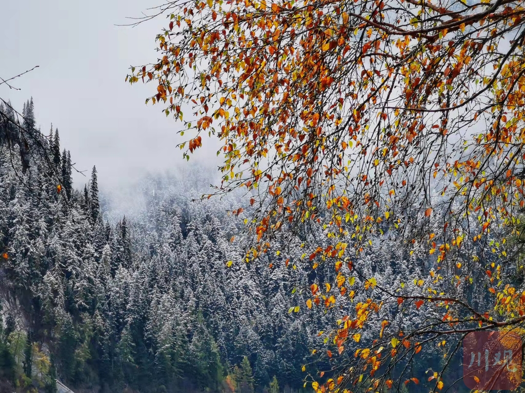 交替時(shí)節(jié),四川各地眼下已融合成了多姿多彩的天然調(diào)色盤(pán),或是彩林錯(cuò)落,或是銀裝素裹,彩林與白雪相遇相擁,半山彩林半山雪的景致讓人無(wú)限向往。