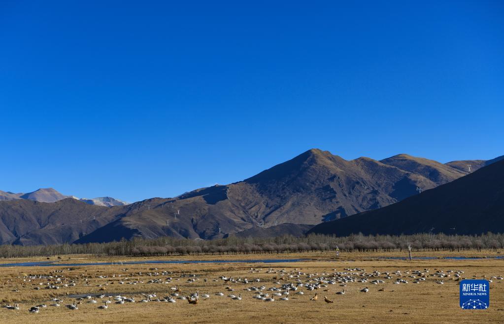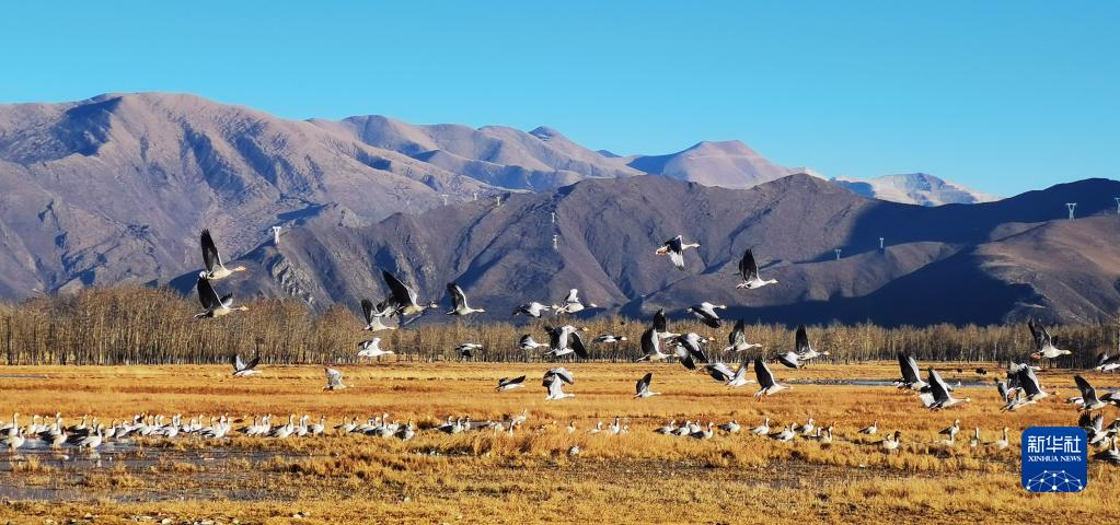 這是在唐嘎濕地拍攝的斑頭雁(12月11日攝)。新華社記者 沈虹冰 攝