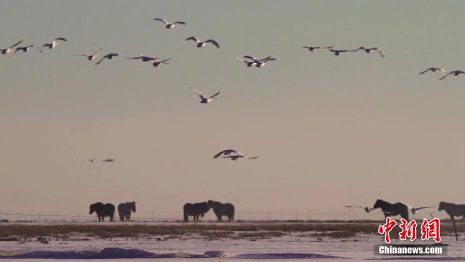 青海湖畔大天鵝集體“泡湯”畫面唯美
