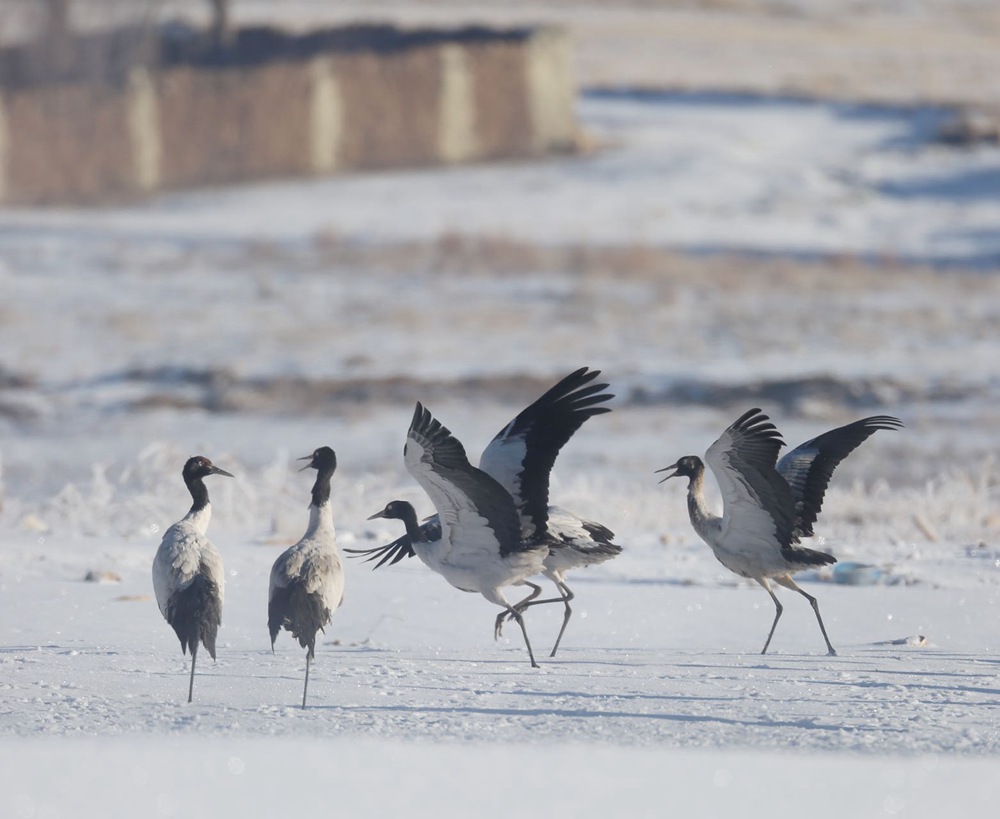 近日,西藏拉薩市林周縣迎來降雪,位于林周縣境內(nèi)的黑頸鶴保護(hù)區(qū)變成了粉妝玉砌的世界,黑頸鶴與白皚皚的大雪相互點綴,構(gòu)建出一幅自然和諧的冬日畫卷。[詳細(xì)]