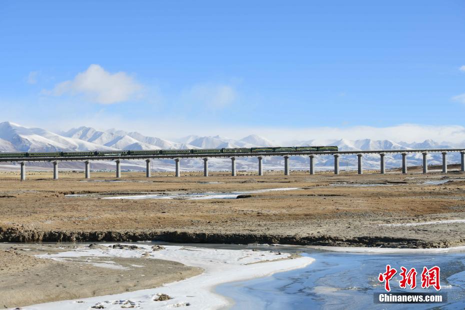 圖為一輛火車從當雄縣阿熱濕地經(jīng)過。 貢嘎來松 攝