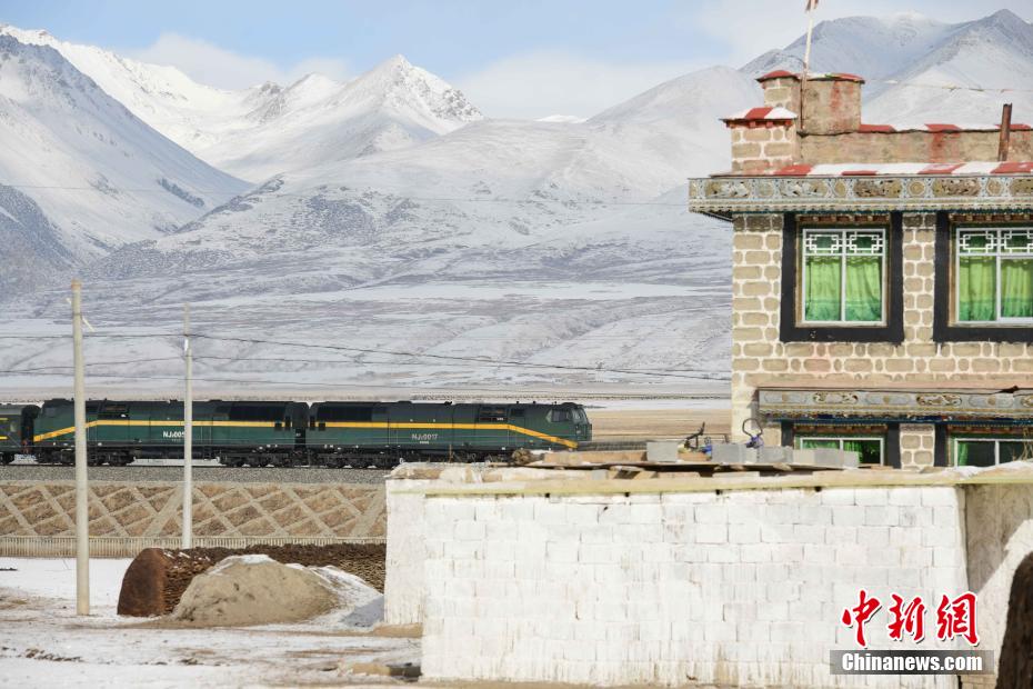圖為一輛火車從當雄縣阿熱濕地牧民家前經(jīng)過。 貢嘎來松 攝