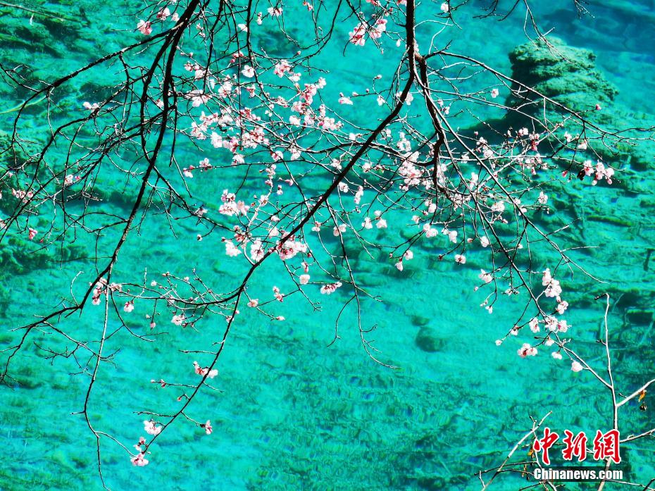 3月的九寨溝春回大地,暖陽怡人,遍布河谷、湖畔、山腰的九寨扁桃花迎風綻放,花期正當時。梁楓 攝