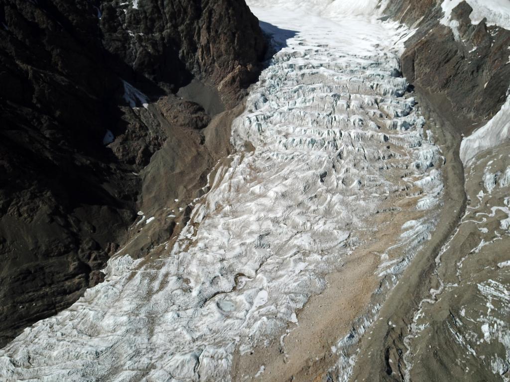 2022年3月27日拍攝的窮母崗日峰腳下的冰川。(無人機(jī)照片,新華社記者 姜帆 攝)