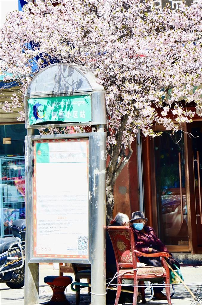 住在拉薩靠北邊的市民同樣能一飽眼福。娘熱北路兩側的榆葉梅已全部綻放,而緊鄰娘熱路的慈松塘中路和慈松塘東路更是一片春花爛漫的美好景象。慈松塘中路和北路的榆葉梅栽種較為密集,成團成簇的淡粉色花朵擠在枝頭,樹下乘涼的老奶奶、樹邊停靠的公交車,在花朵的加持下,隨手一拍便是故事感極強的畫面。