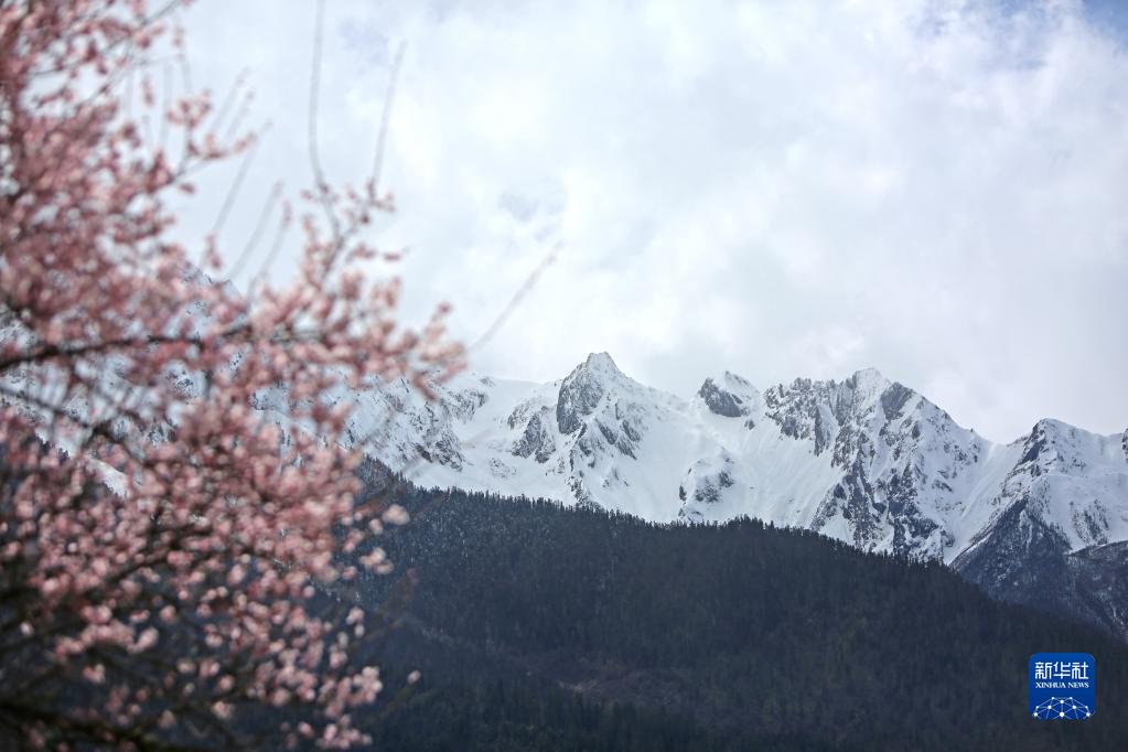 近日,林芝市波密縣古通村漫山遍野桃花盛開(kāi),與高原雪山相映成趣。
