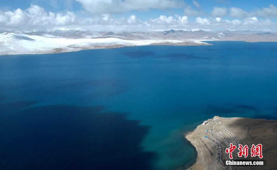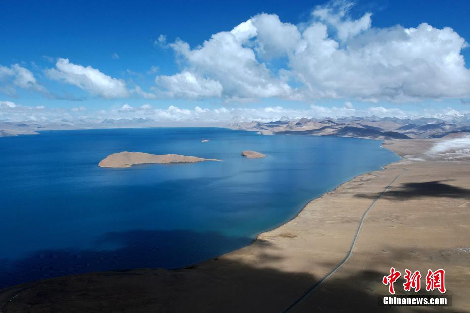 空中俯瞰普姆雍措風光。