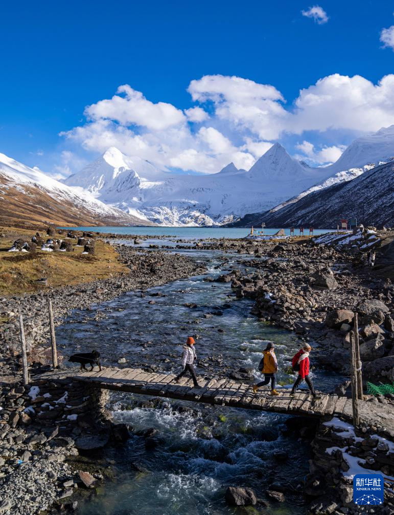 游客徒步經(jīng)過薩普雪山腳下的木橋(10月28日攝)。新華社記者 孫非 攝