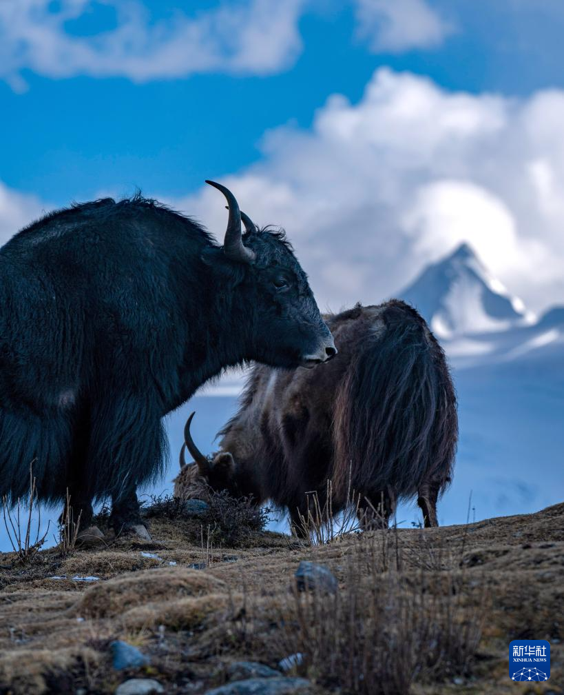牦牛在薩普雪山腳下的草場(chǎng)上吃草(10月28日攝)。新華社記者 孫非 攝